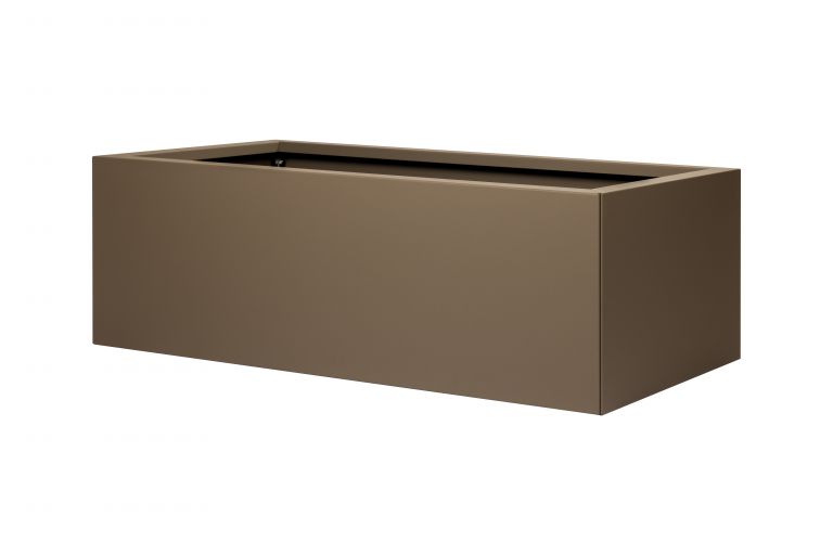 In supra bruin straalt de bak warmte en elegantie uit. De kleur doet denken aan aarde en brons en sluit prachtig aan bij hout, steen en groene beplanting. De matte poedercoating beschermt het staal tegen krassen en weersinvloeden en zorgt dat de rijke, bruine tint zijn karakter behoudt, jaar na jaar.