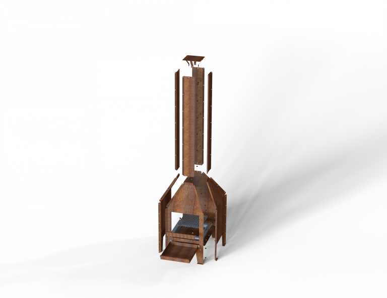 Het cortenstaal krijgt na verloop van tijd zijn kenmerkende roestbruine tint — een natuurlijke beschermlaag die de haard sterker maakt en zijn warme uitstraling geeft. Deze buitenhaard van cortenstaal combineert functionaliteit met design: onderhoudsarm, bestand tegen weer en wind en ontworpen om jarenlang mee te gaan. Een stijlvolle blikvanger die past bij elke buitenruimte — van modern terras tot landelijke tuin.