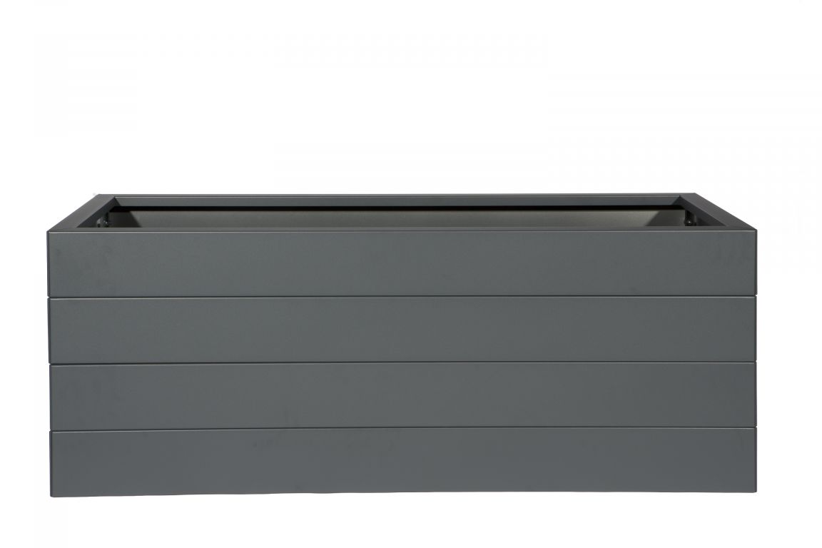 De antracietkleurige modulaire plantenbak is verkrijgbaar in diverse vormen en maten:
