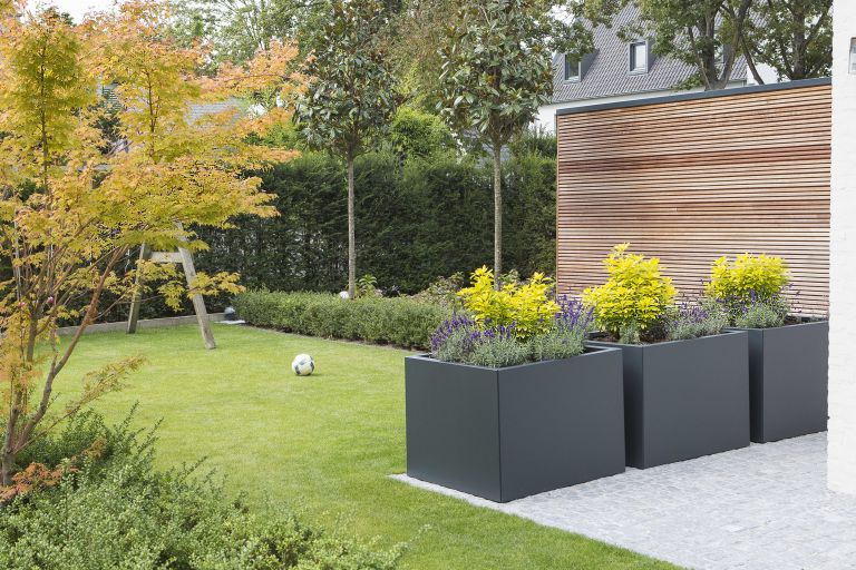 Dankzij het modulaire systeem bepaal je zelf de afmetingen. De bakken kunnen laag en subtiel zijn of juist hoog en robuust voor extra structuur en privacy.