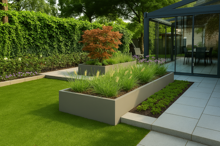 De vlakke modulaire plantenbak van Forsento biedt volledige vrijheid in ontwerp. Door de losse, vlakke panelen eenvoudig met elkaar te verbinden, bepaal je zelf de lengte, breedte en hoogte. Het systeem is ideaal voor wie een maatwerkuitstraling wil zonder maatwerk te hoeven bestellen.